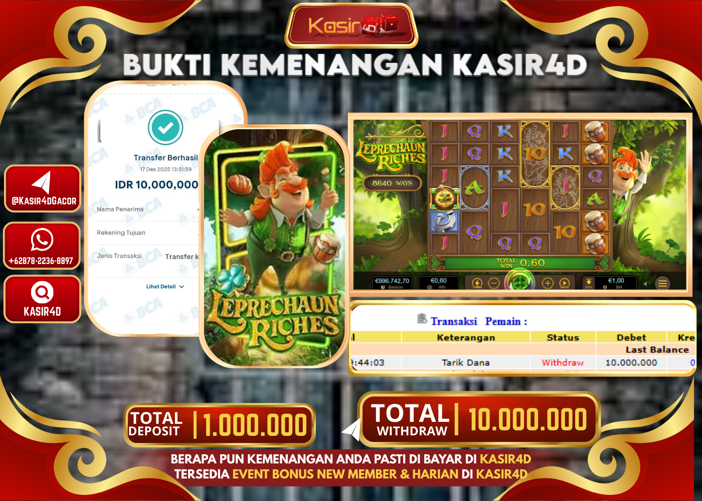 Maka tidak disangsikan kembali bila Anda memilih untuk mendaftarkan dan bermain di website slot Gacor KASIR4D , Anda terang mempunyai kesempatan besar untuk memperoleh jackpot maxwin yang spektakuler dibanding situs slot online yang lain secara umum.