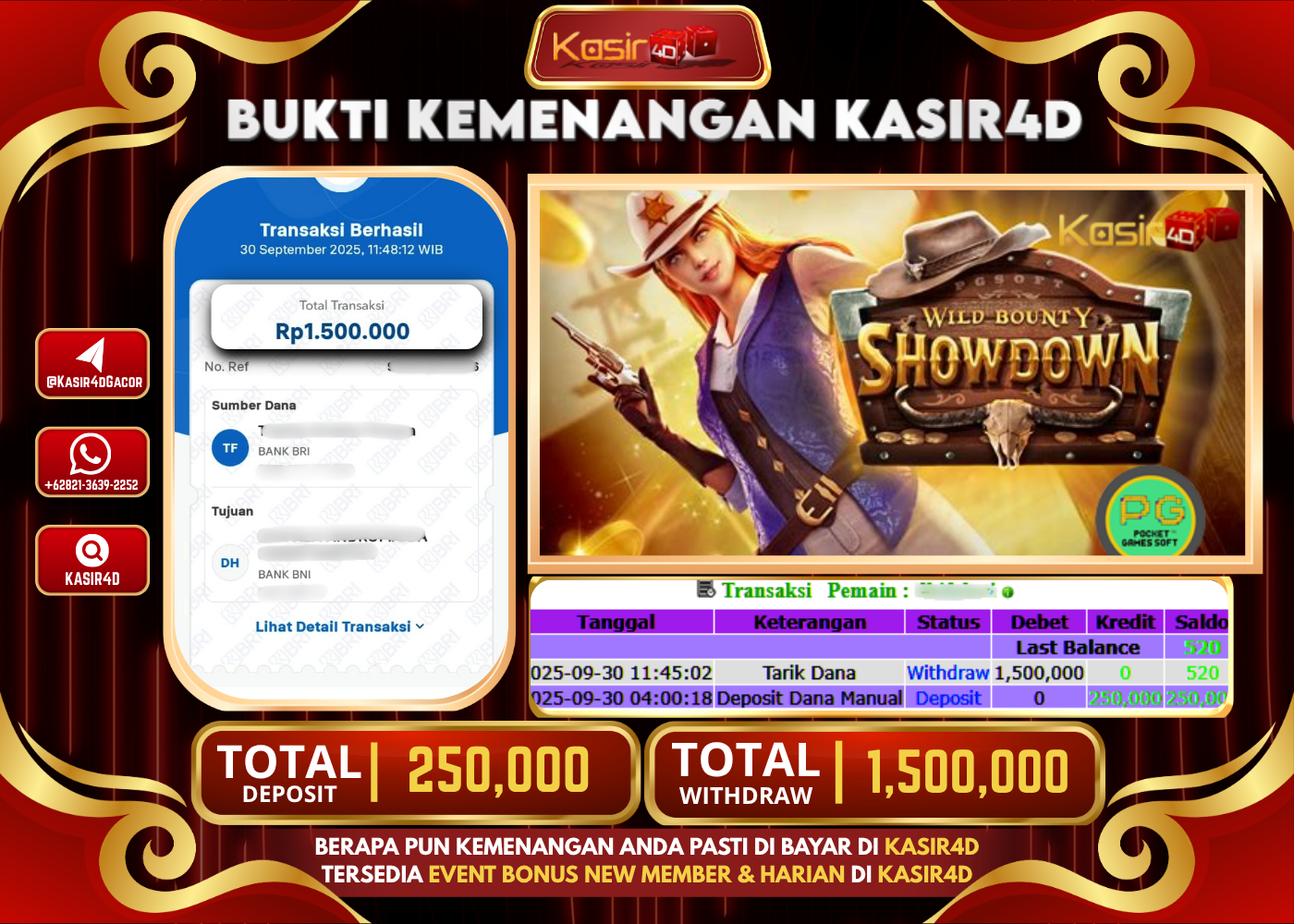 KASIR4D, Selamat Kepada User Id : Yan****to96 Atas Withdraw Hari ini Tgl 30 September 2025Rp. 1,500,000 Di Game PG SOFT WILD…