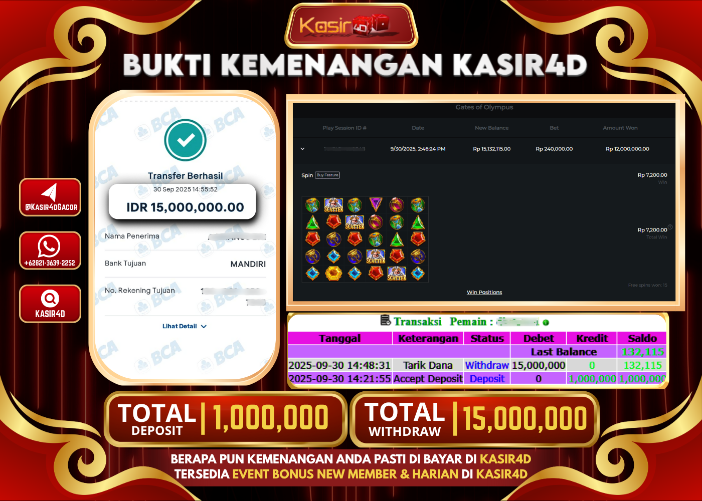 KASIR4D, Selamat Kepada User Id : Boy****bay87 Atas Withdraw Hari ini Tgl 30 September 2025Rp. 15,000,000 Di Game PRAGMATIC PLAY GATES…