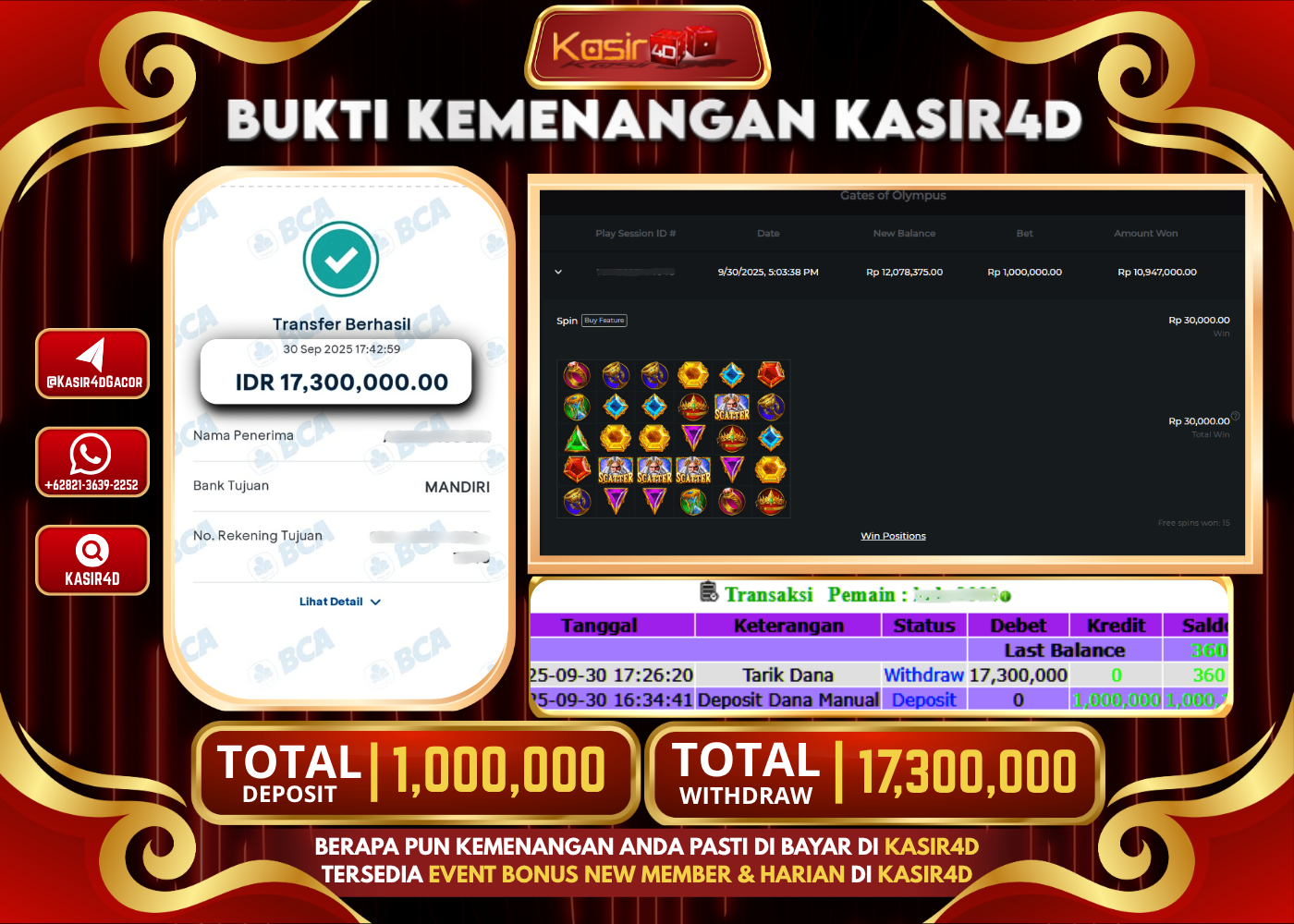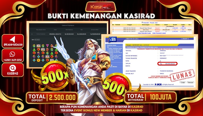 KASIR4D, Selamat Kepada User Id : Billy*****un Atas Withdraw Hari ini Tgl 30 September 2025Rp. 100,000,000 Di Game PRAGMATIC PLAY GATES…