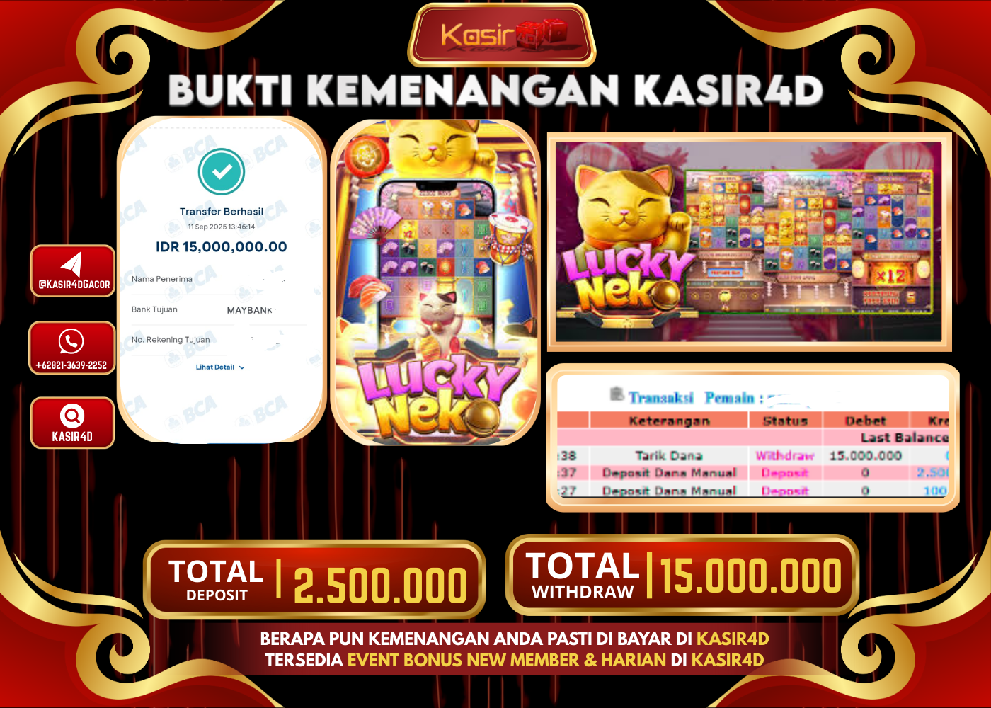 KASIR4D,Selamat Kepada User Id : pe****k23 Atas Withdraw Hari iniTgl 19 SEPTEMBER 2025 Rp.15.000.000 Di Game Pg Soft LUCKY NEKO INFORMASI LENGKAP TERKAIT…