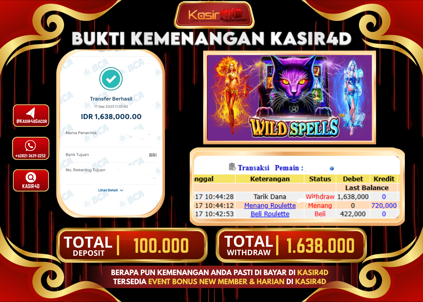 KASIR4D,Selamat Kepada User Id : FI\****58 Atas Withdraw Hari iniTgl 17 SEPTEMBER 2025 Rp.1.638.000 Di Game Pragmatic Play EILD SPELLS INFORMASI LENGKAP TERKAIT…