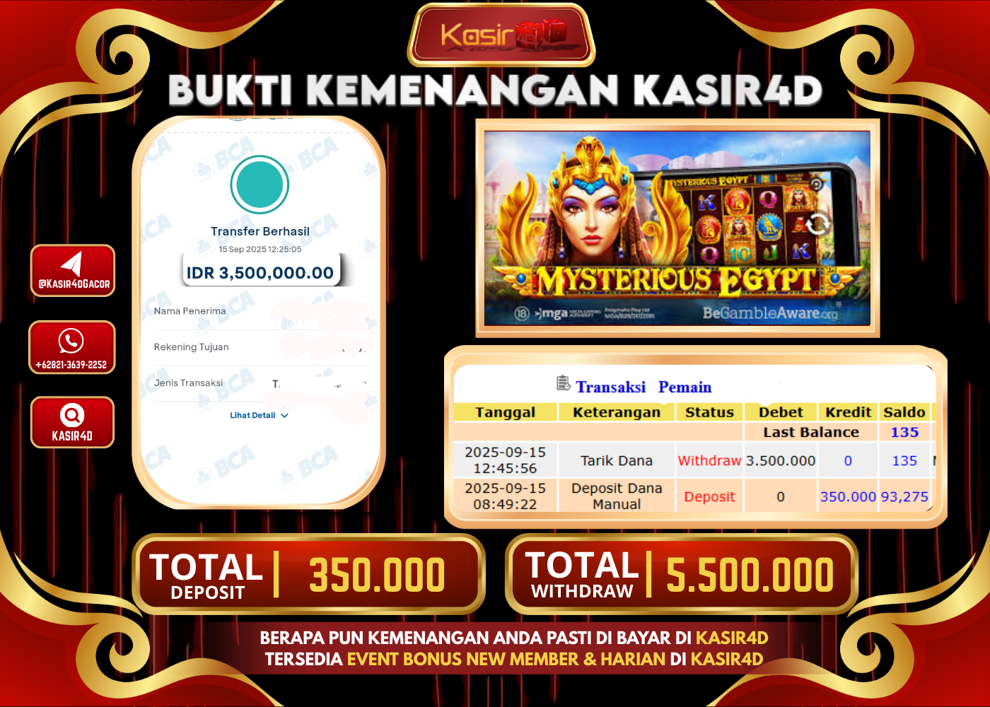 KASIR4D,Selamat Kepada User Id : RI****4 Atas Withdraw Hari iniTgl 15 SEPTEMBER 2025 Rp.3.500.000 Di Game PRAGMATIC MYSTERIOUS EGYPT INFORMASI LENGKAP TERKAIT SITUS…