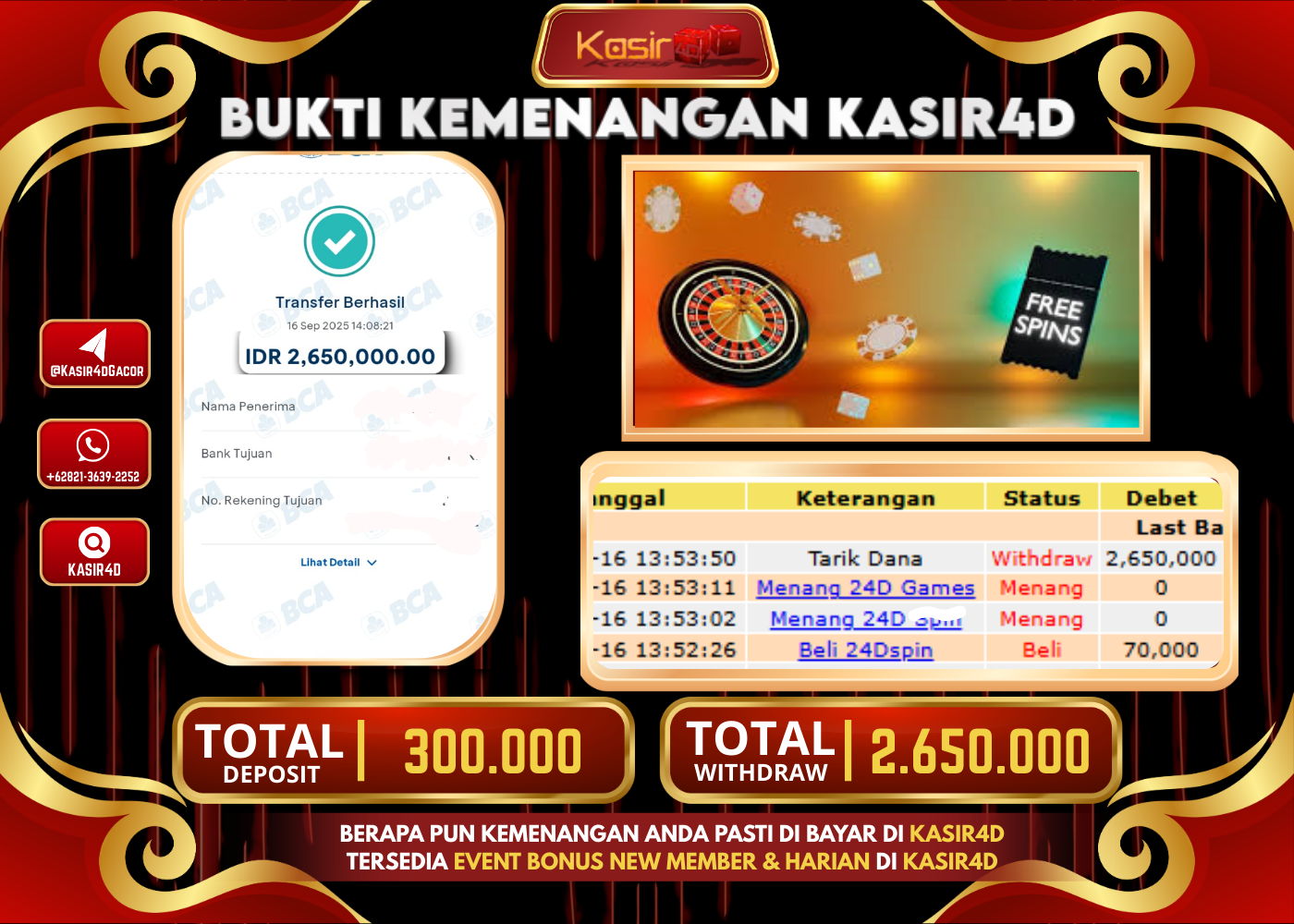 KASIR4D,Selamat Kepada User Id : JA***T Atas Withdraw Hari iniTgl 16 SEPTEMBER 2025 Rp.2.650.000 Di Game CASINO 24D INFORMASI LENGKAP TERKAIT SITUS KASIR4D…
