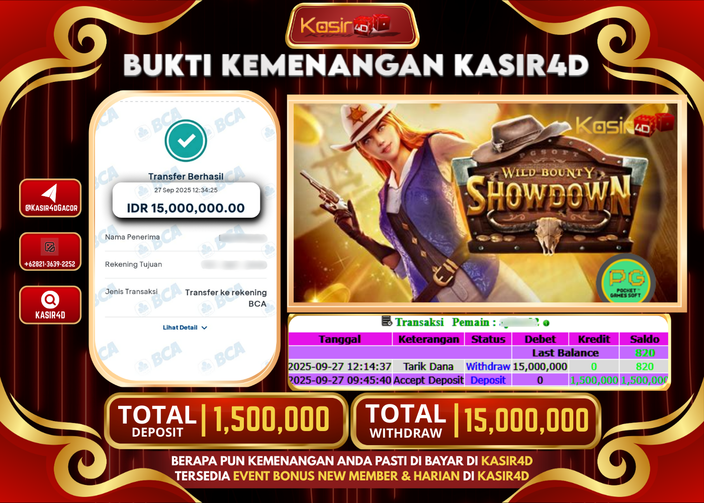 KASIR4D, Selamat Kepada User Id : Tes****un75 Atas Withdraw Hari ini Tgl 27 September 2025Rp. 15,000,000 Di Game WILD BOUNTY SHOWDOWN…