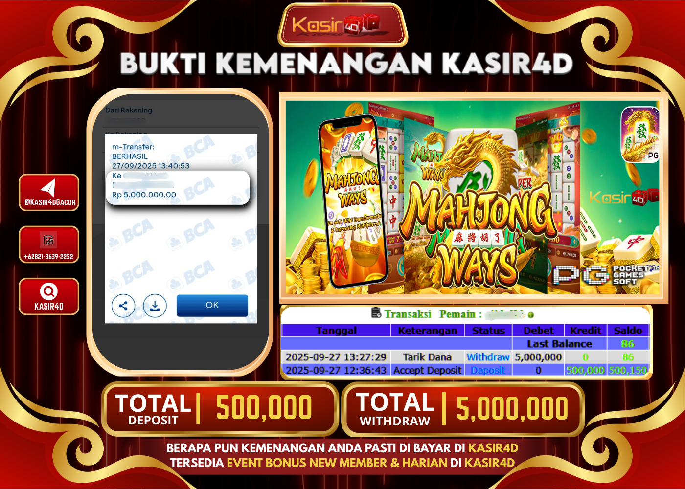 KASIR4D, Selamat Kepada User Id : Ce****nung99 Atas Withdraw Hari ini Tgl 27 September 2025Rp. 5,000,000 Di Game PG SOFT MAHJONG…