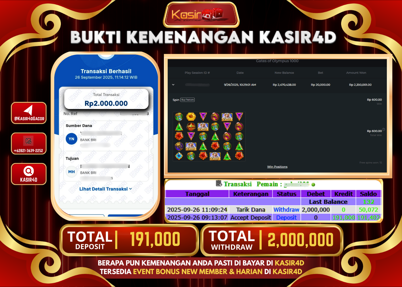 KASIR4D, Selamat Kepada User Id : Lin****ton99 Atas Withdraw Hari ini Tgl 26 September 2025Rp. 2,000,000 Di Game PRAGMATIC PLAY GATES…