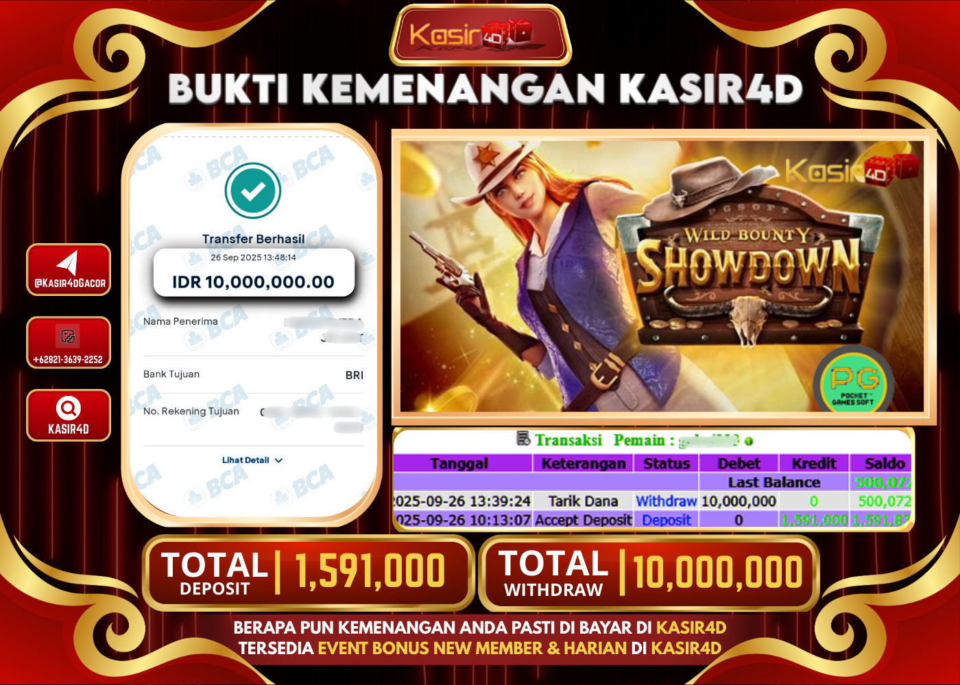 KASIR4D, Selamat Kepada User Id : Si0****num99 Atas Withdraw Hari ini Tgl 26 September 2025Rp. 10,000,000 Di Game PG SOFT WILD…