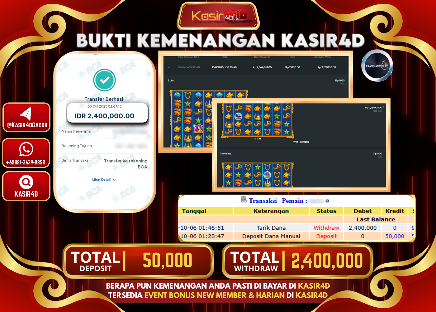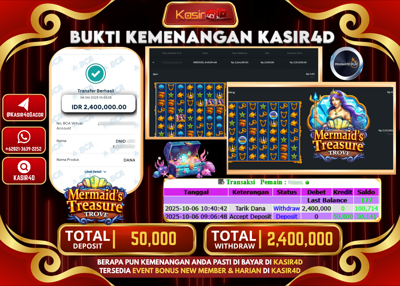 KASIR4D, Selamat Kepada User Id : T****22 Atas Withdraw Hari ini Tgl 06 Oktober 2025Rp. 2,400,000 Di Game PRAGMATIC PLAY MERMAID’S…