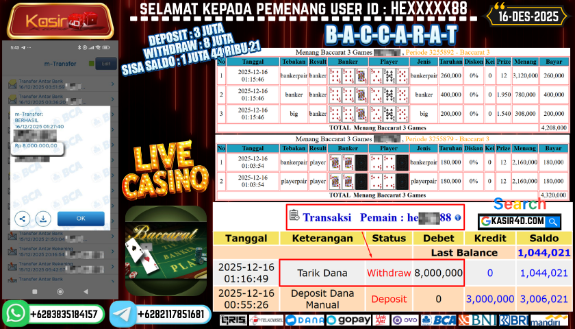 KASIR4DSelamat Kepada User Id : Pe*****nok99 Atas Withdraw Hari ini Tgl 09 September 2025