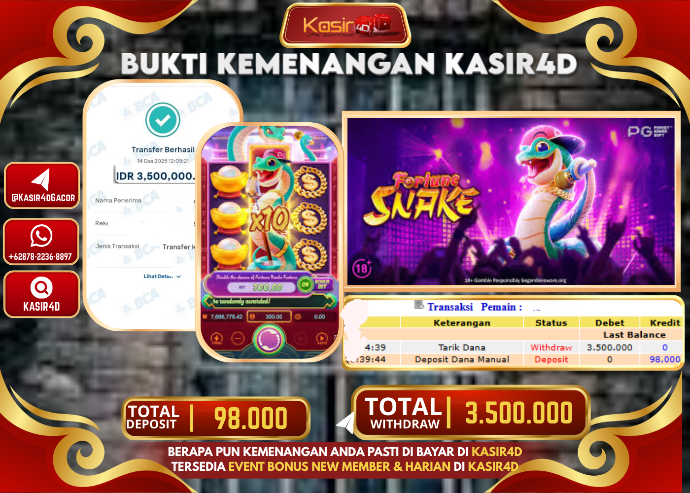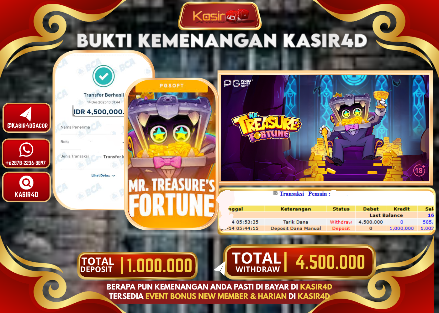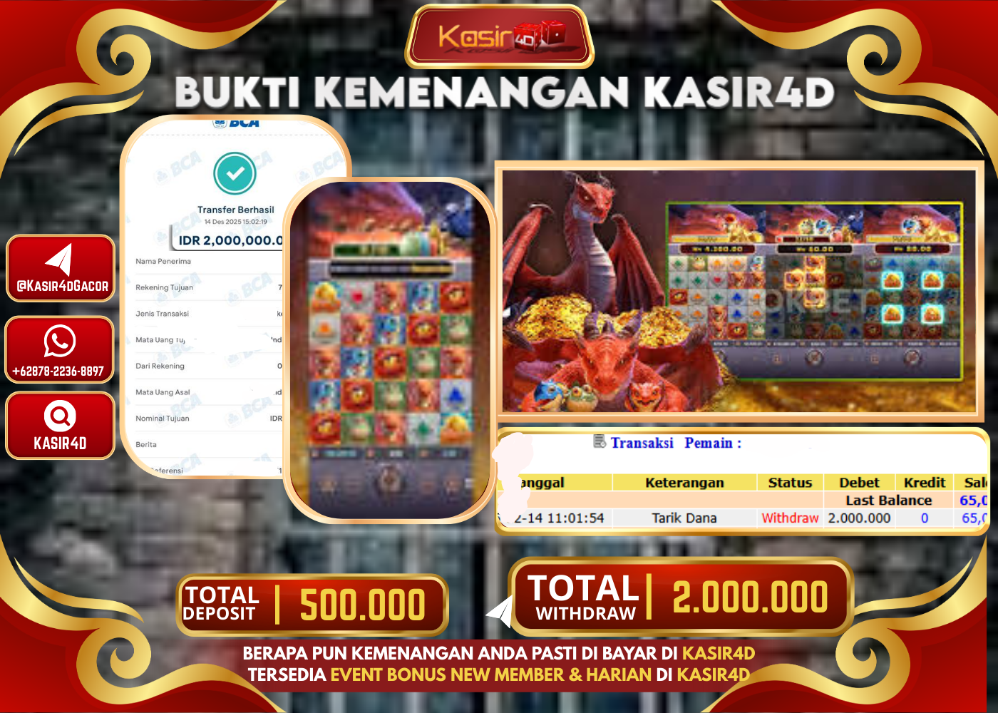 Tak hanya itu, Kasir4d juga menghadirkan promo dan bonus spesial, seperti bonus deposit 50% setiap hari untuk semua permainan slot. Bonus ini tentunya meningkatkan nilai lebih dalam pengalaman bermain Anda.
