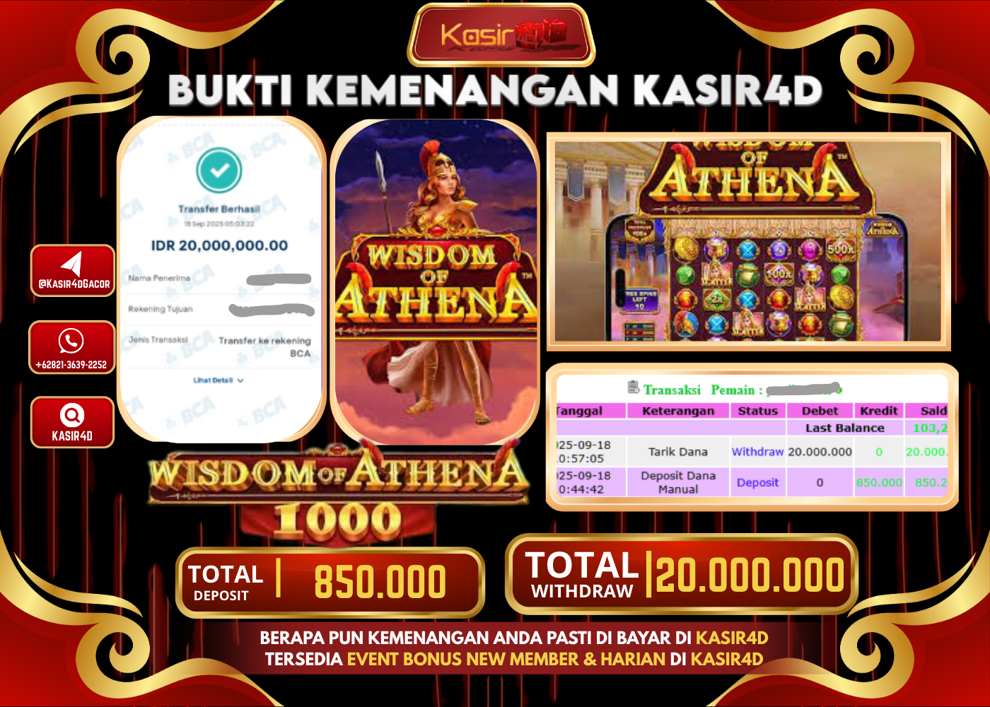 Tgl 18 SEPTEMBER 2025 Rp.20.000.000 Di Game PRAGMATIC PLAY WISDOM of ATHENA 1000