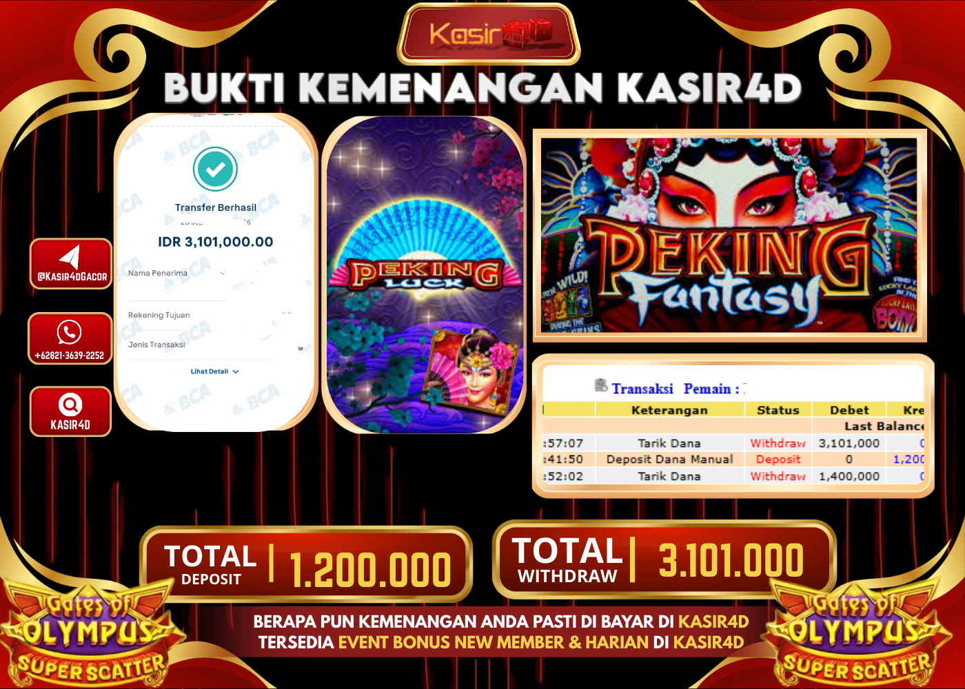 Maka tidak disangsikan kembali bila Anda memilih untuk mendaftarkan dan bermain di website slot Gacor KASIR4D , Anda terang mempunyai kesempatan besar untuk memperoleh jackpot maxwin yang spektakuler dibanding situs slot online yang lain secara umum.