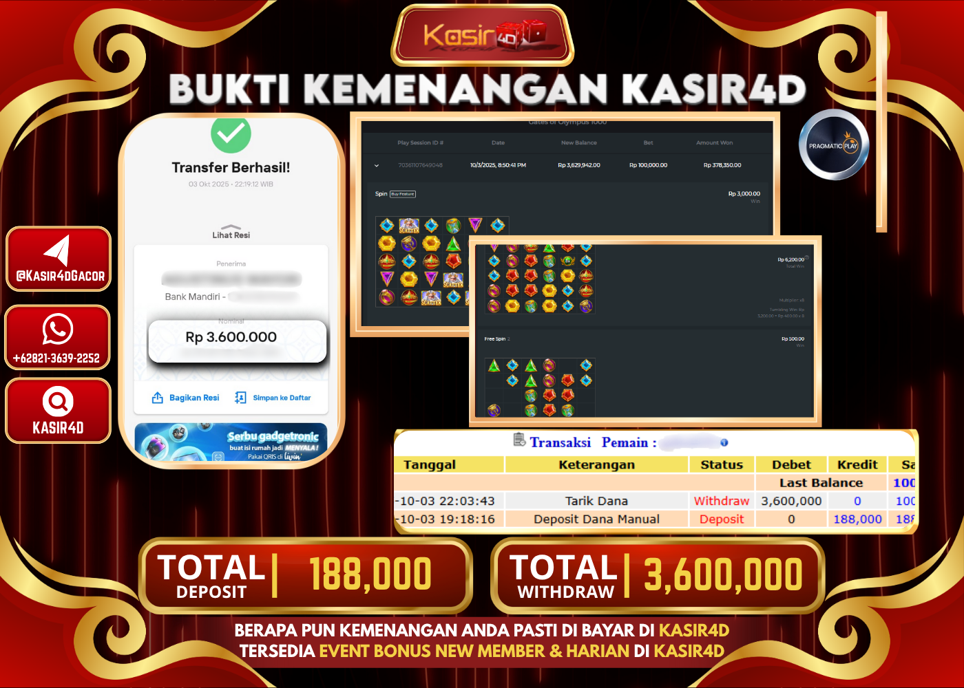 KASIR4D, Selamat Kepada User Id : G*****23 Atas Withdraw Hari ini Tgl 03 Oktober 2025