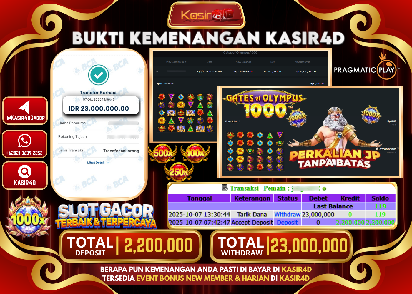 Rp. 23,000,000 Di Game PRAGMATIC PLAY GATES OF OLYMPUS 1000