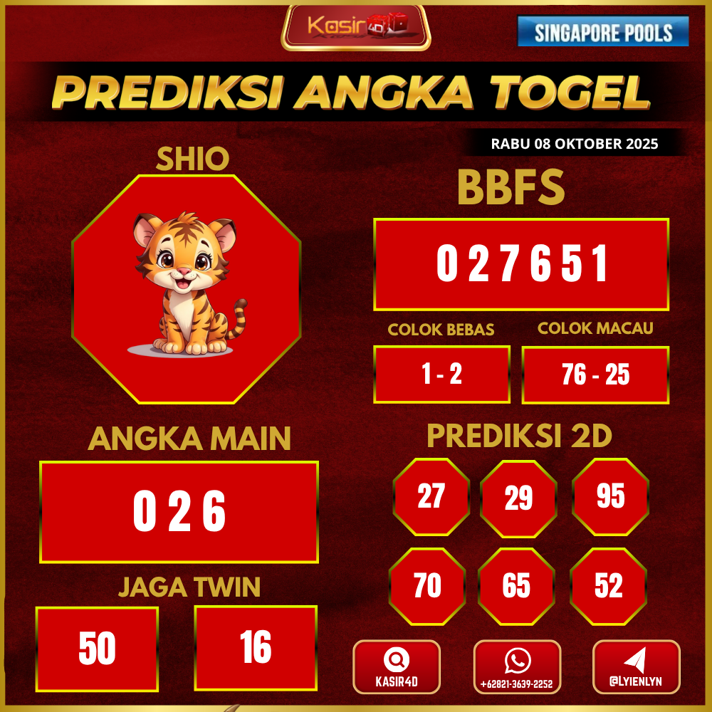 Jangan lupa juga untuk melihat prediksi togel Singapore 08 Oktober dan pasaran Singapore terbaru hanya di Kasir4d.