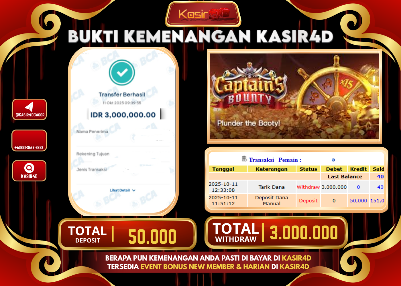 Rp. 3.000.000 Di Game PG SOFT CAPTAINS BOUNTY
