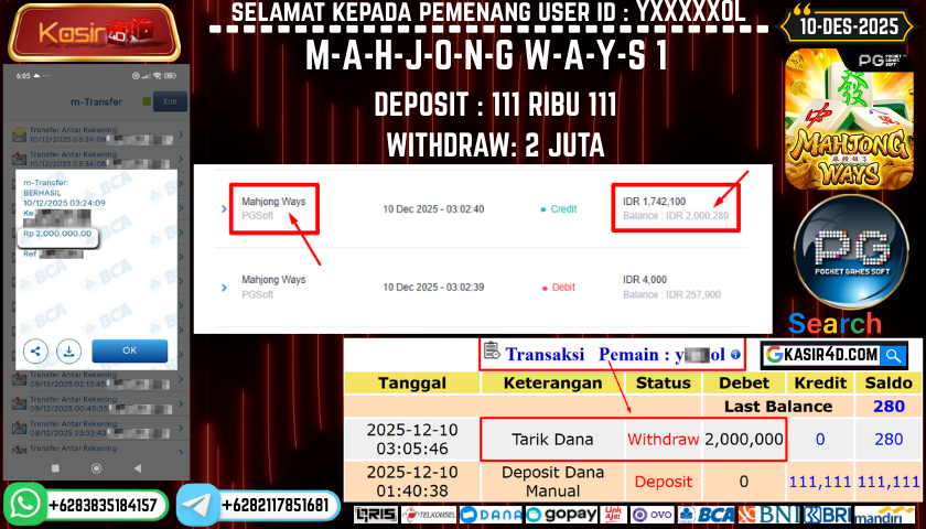KASIR4D, Selamat Kepada User Id : Ki*****la33 Atas Withdraw Hari ini Tgl 24 Oktober 2025