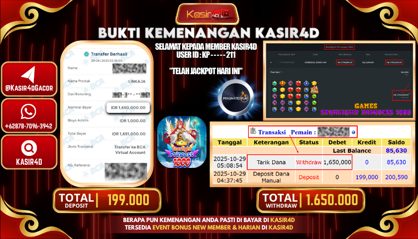 Tak hanya itu, Kasir4d juga menghadirkan promo dan bonus spesial, seperti bonus deposit 50% setiap hari untuk semua permainan slot. Bonus ini tentunya meningkatkan nilai lebih dalam pengalaman bermain Anda.