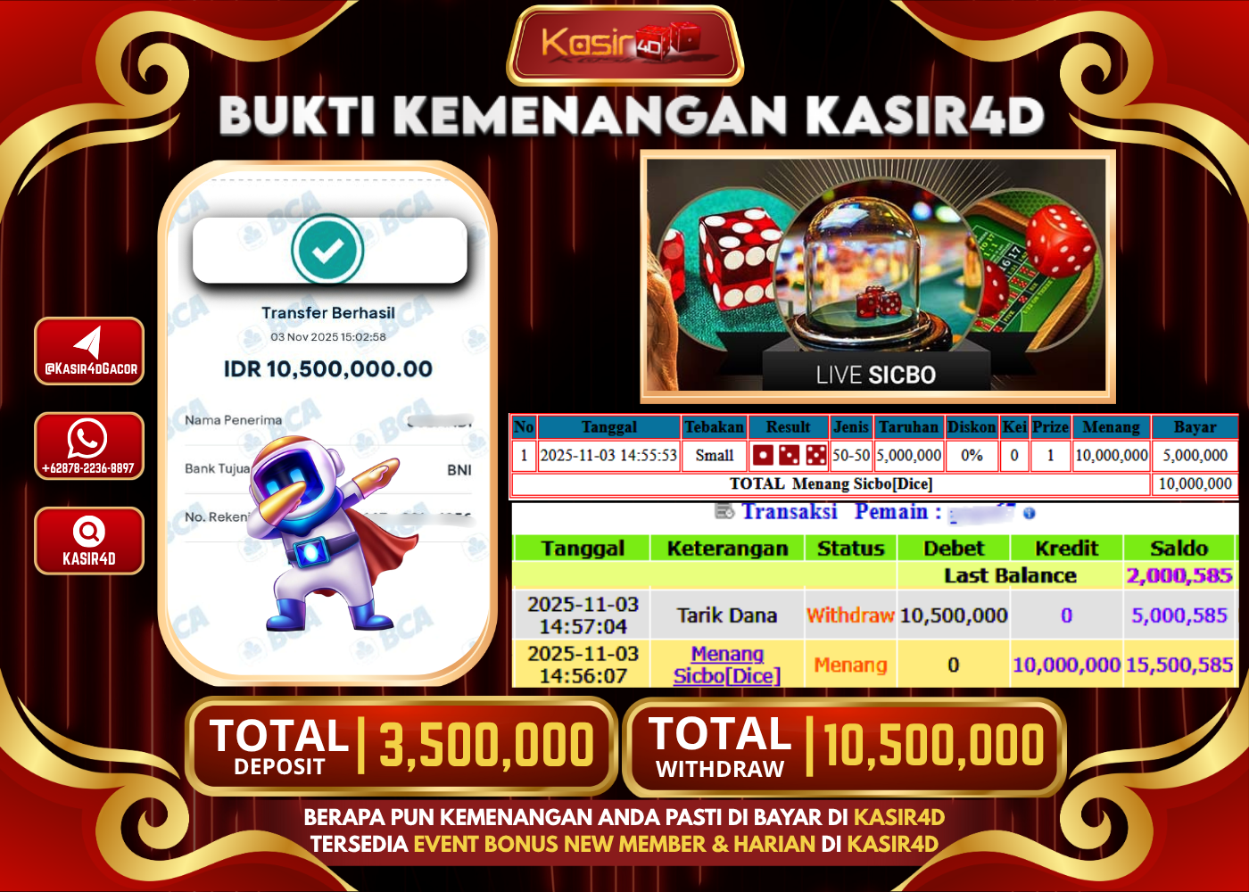 Rp. 10.500.000 Di LIVE GAME CASINO SICBO