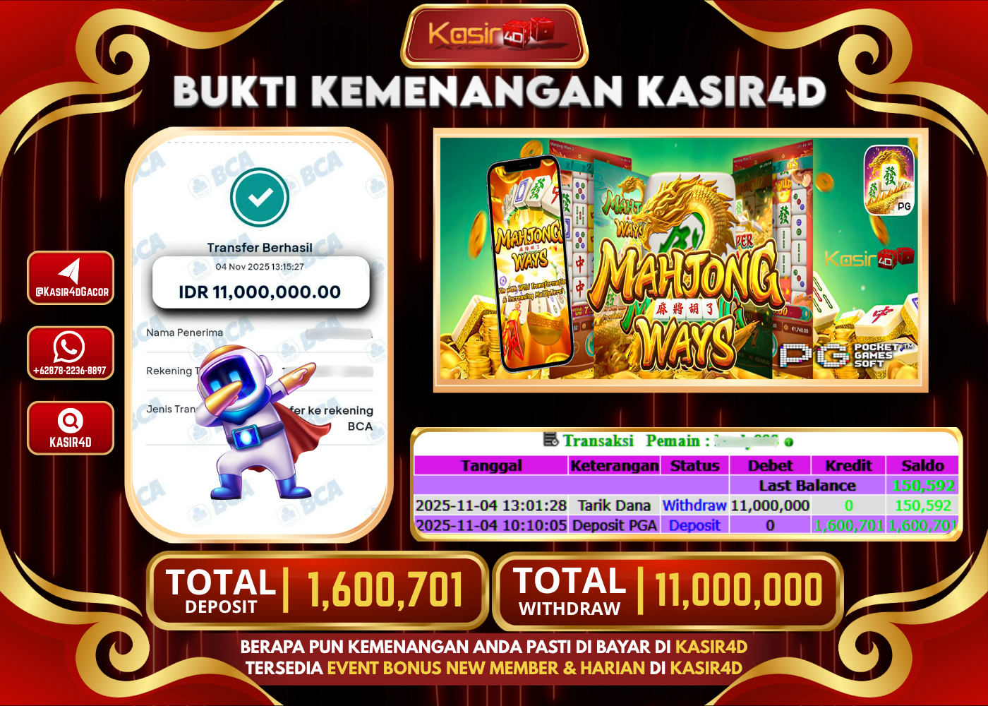 KASIR4D, Selamat Kepada User Id : Dad******ra66 Atas Withdraw Hari ini Tgl 04 November 2025