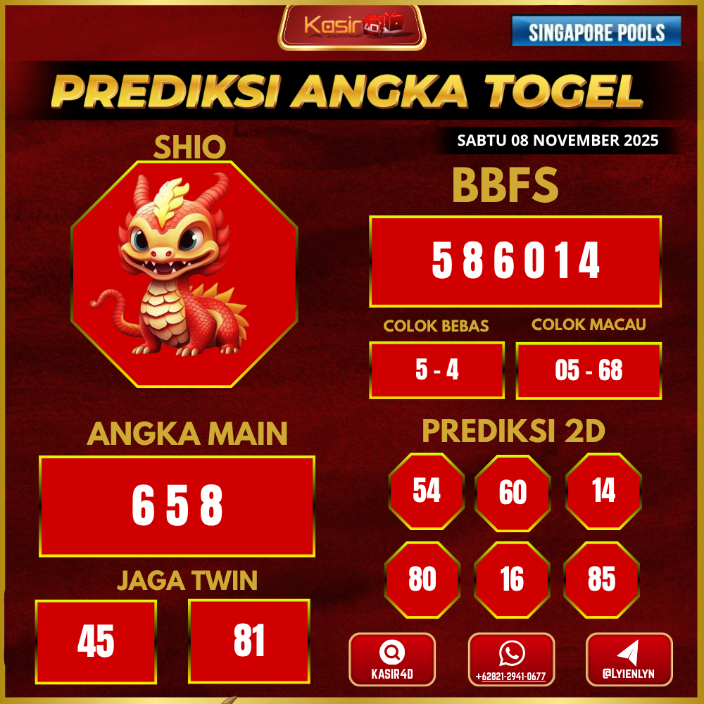 Jangan lupa juga untuk melihat prediksi togel Singapore 08 November 2025 dan pasaran Singapore terbaru hanya di Kasir4d.