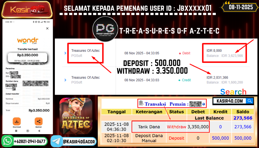 Tgl 08 November 2025 Rp.3.350.000 Di Game Pg Soft Treasures Of Aztec