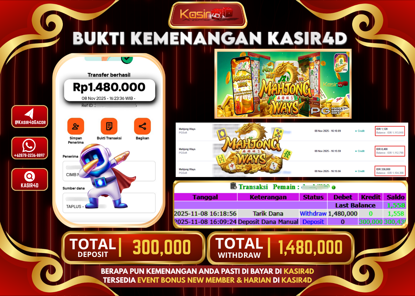 Maka tidak disangsikan kembali bila Anda memilih untuk mendaftarkan dan bermain di website slot Gacor KASIR4D , Anda terang mempunyai kesempatan besar untuk memperoleh jackpot maxwin yang spektakuler dibanding situs slot online yang lain secara umum.