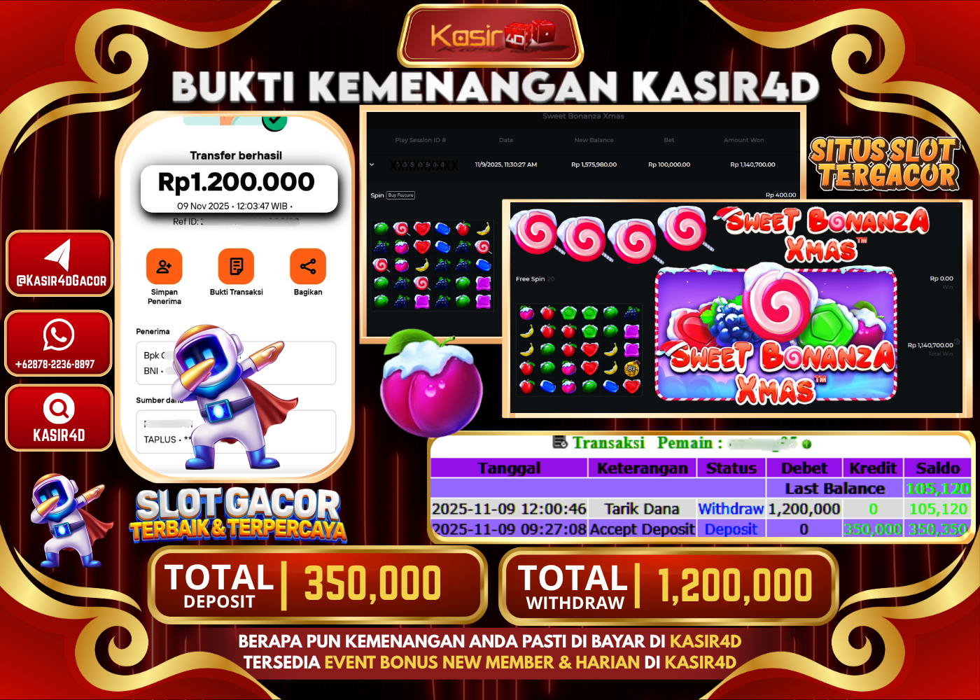 KASIR4D, Selamat Kepada User Id : Ber*****at22 Atas Withdraw Hari ini Tgl 09 November 2025