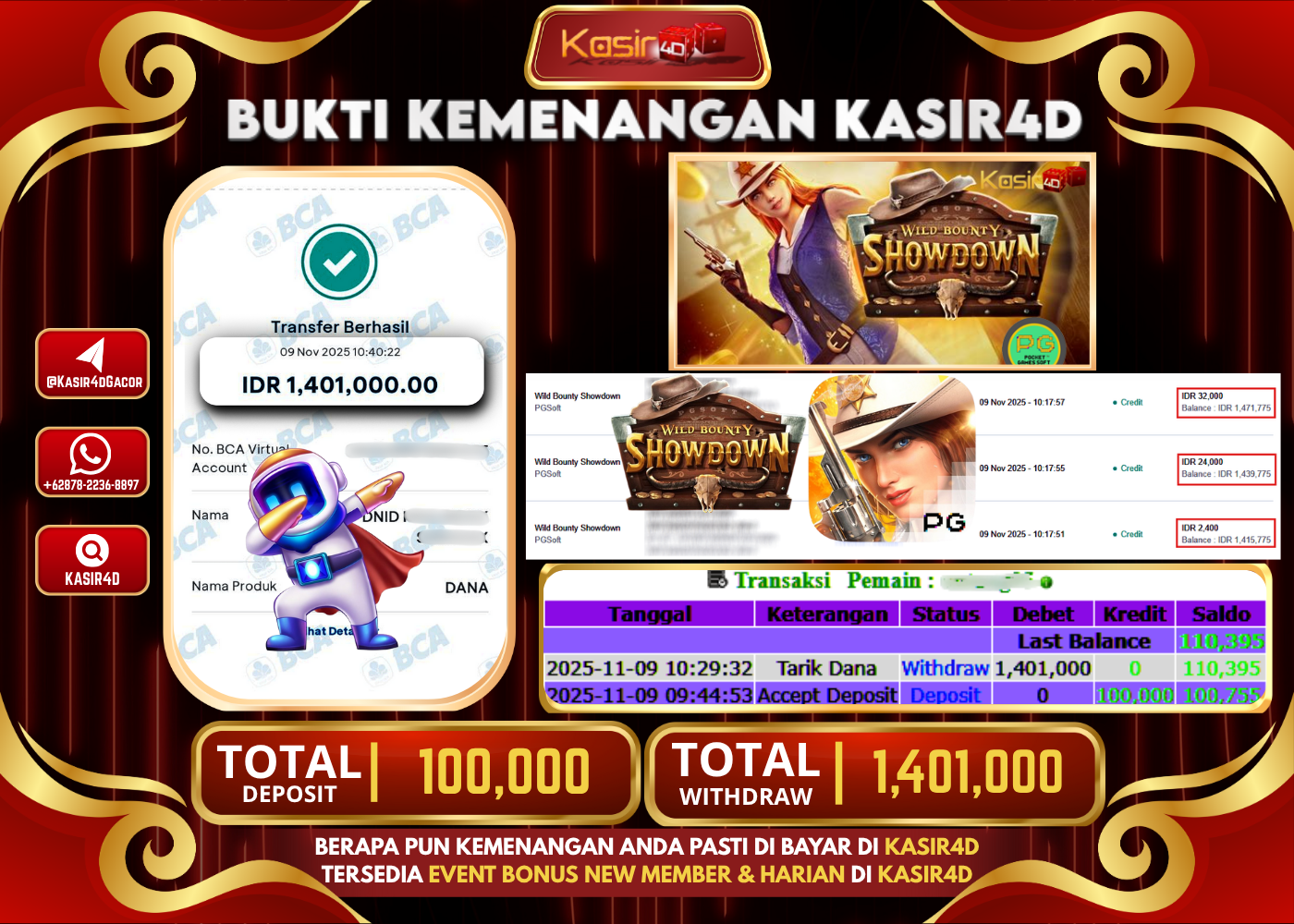 KASIR4D, Selamat Kepada User Id : Are*****i00 Atas Withdraw Hari ini Tgl 09 November 2025