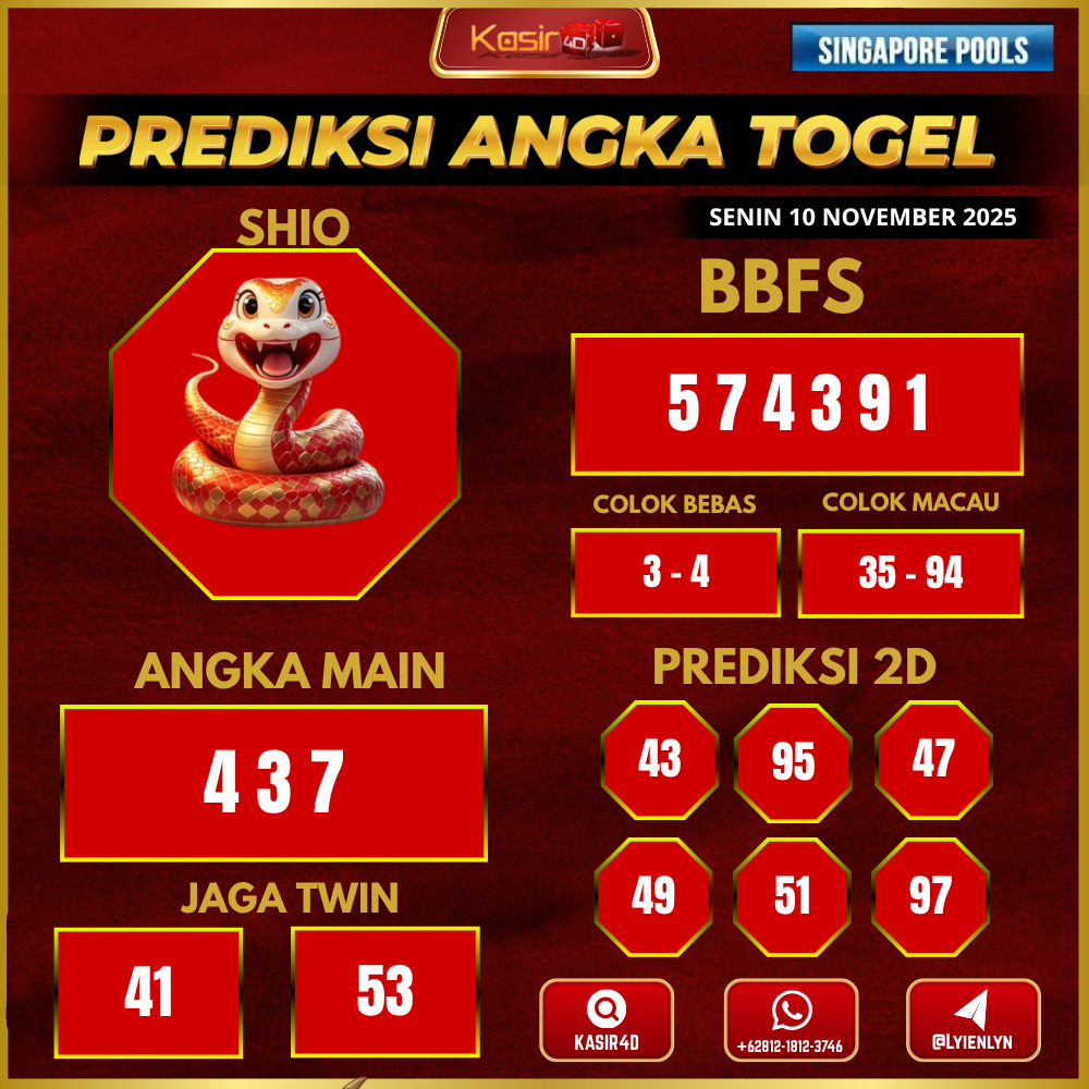 Jangan lupa juga untuk melihat prediksi togel Singapore 10 November 2025 dan pasaran Singapore terbaru hanya di Kasir4d.