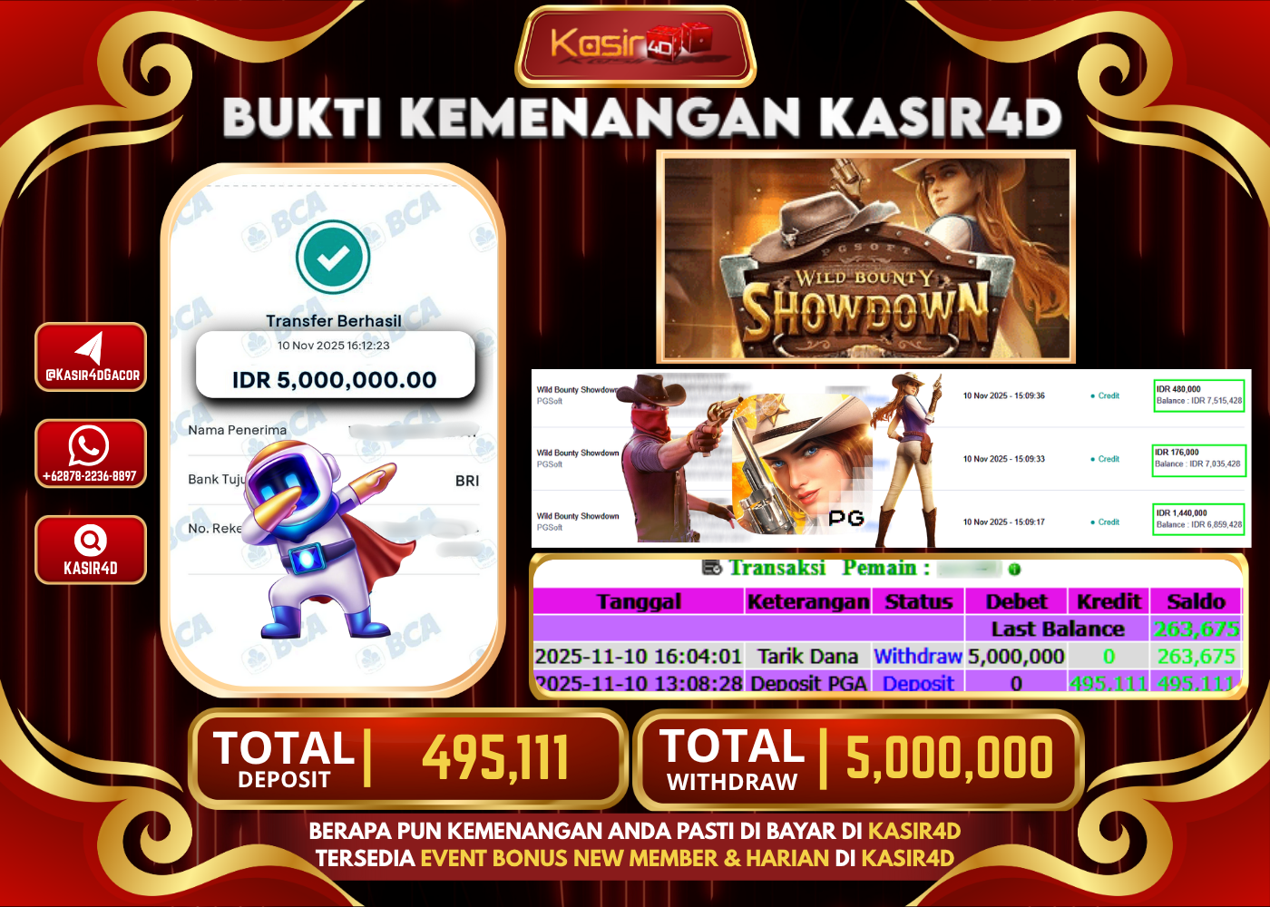 Maka tidak disangsikan kembali bila Anda memilih untuk mendaftarkan dan bermain di website slot Gacor KASIR4D , Anda terang mempunyai kesempatan besar untuk memperoleh jackpot maxwin yang spektakuler dibanding situs slot online yang lain secara umum.
