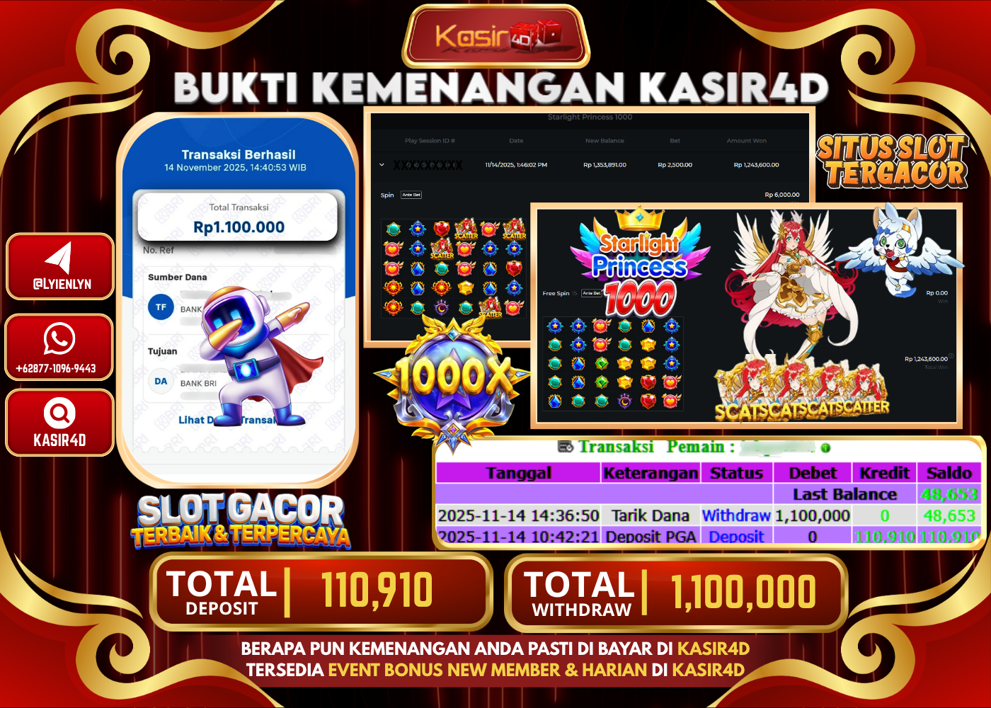 KASIR4D, Selamat Kepada User Id : ZO *****RO90 Atas Withdraw Hari ini Tgl 14 November 2025