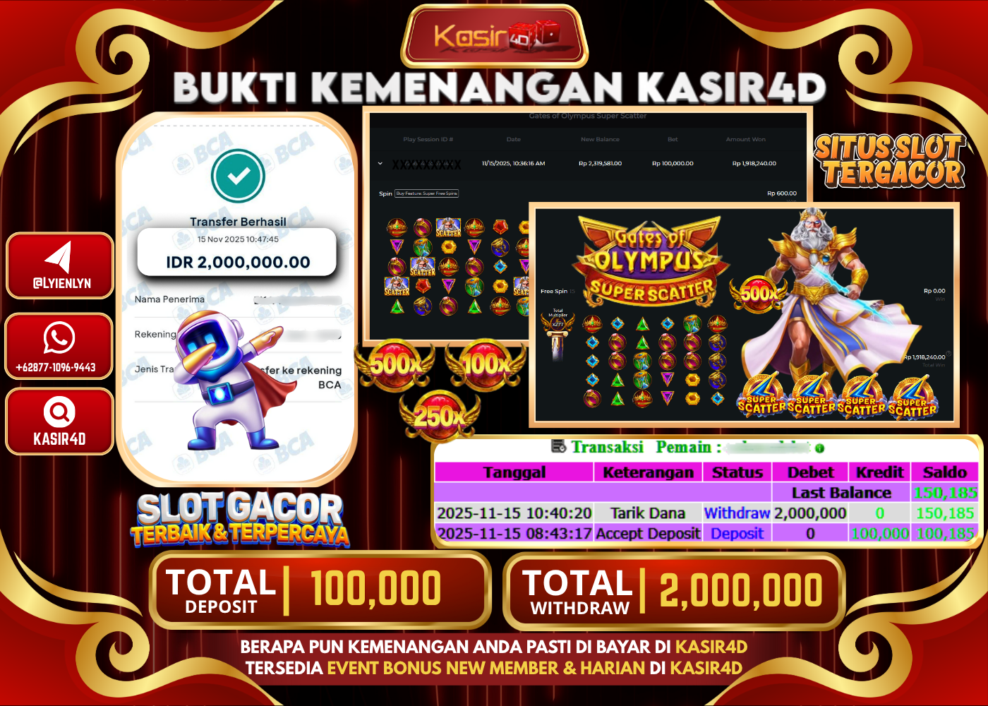 KASIR4DSelamat Kepada User Id : WI *****NTO Atas Withdraw Hari ini Tgl 15 November 2025