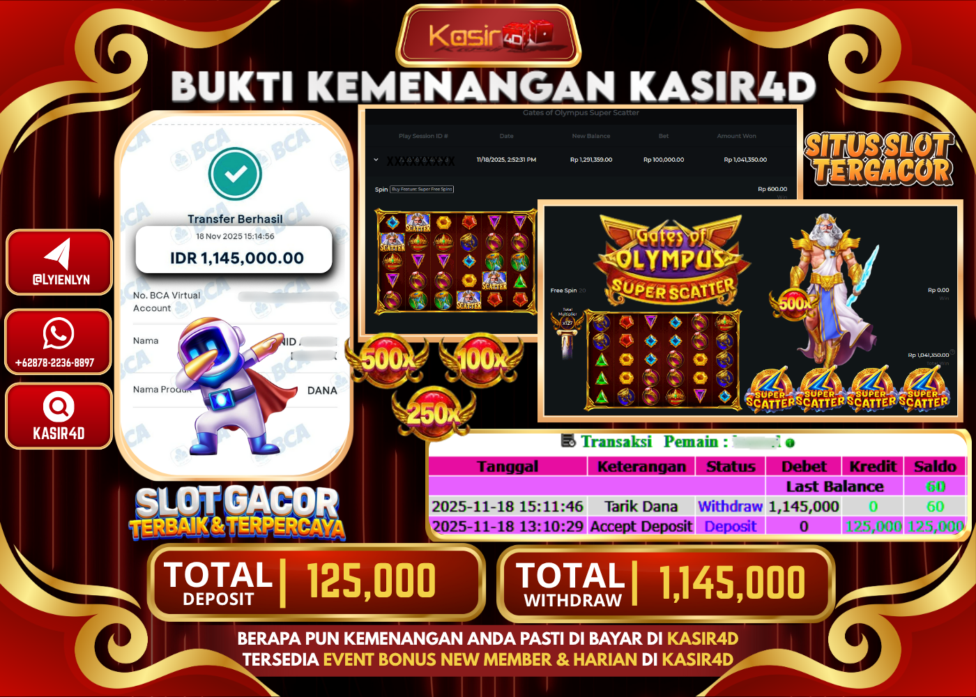 KASIR4DSelamat Kepada User Id : KO ***** TUL66 Atas Withdraw Hari ini Tgl 18 November2025