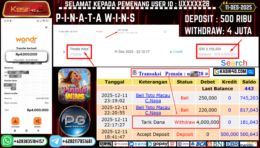 Tgl 11 Desember 2025 Rp. 4.000.000 Di Game Pg Soft Pinata Wins
