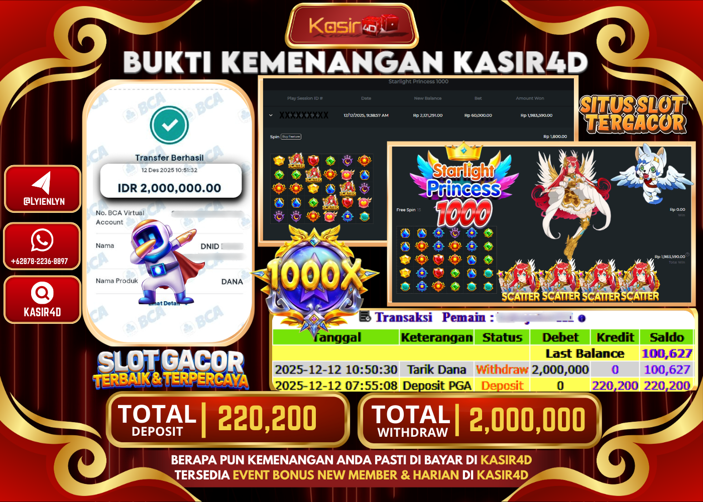 KASIR4D, Selamat Kepada User Id : KA ***** AT111 Atas Withdraw Hari ini Tgl 12 Desember 2025