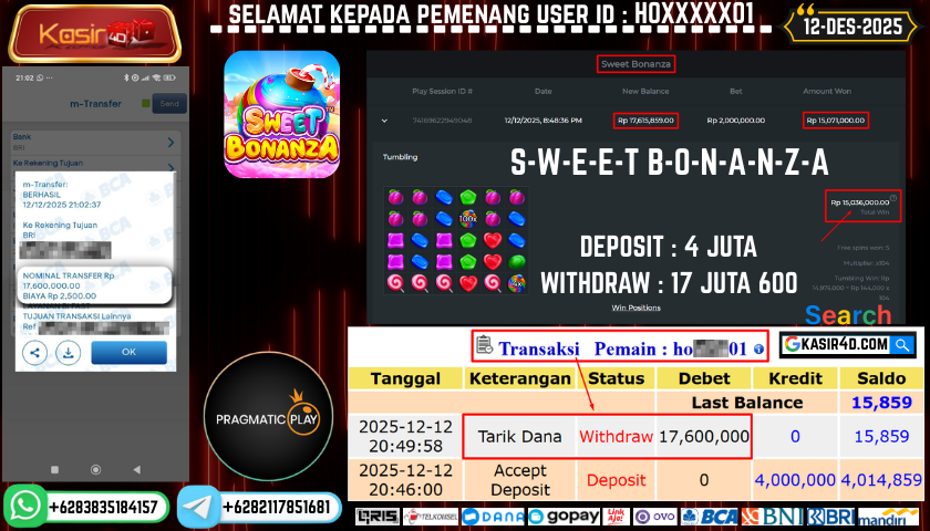 Tgl 12 Desember 2025 Rp. 17.600.000 Di Game Pragmatic Play Sweet Bonanza