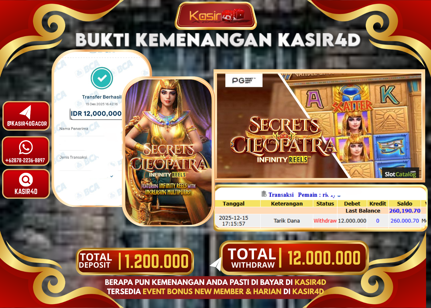 KASIR4D, Selamat Kepada User Id : KU ***** NTOL Atas Withdraw Hari ini Tgl 15 Desember 2025