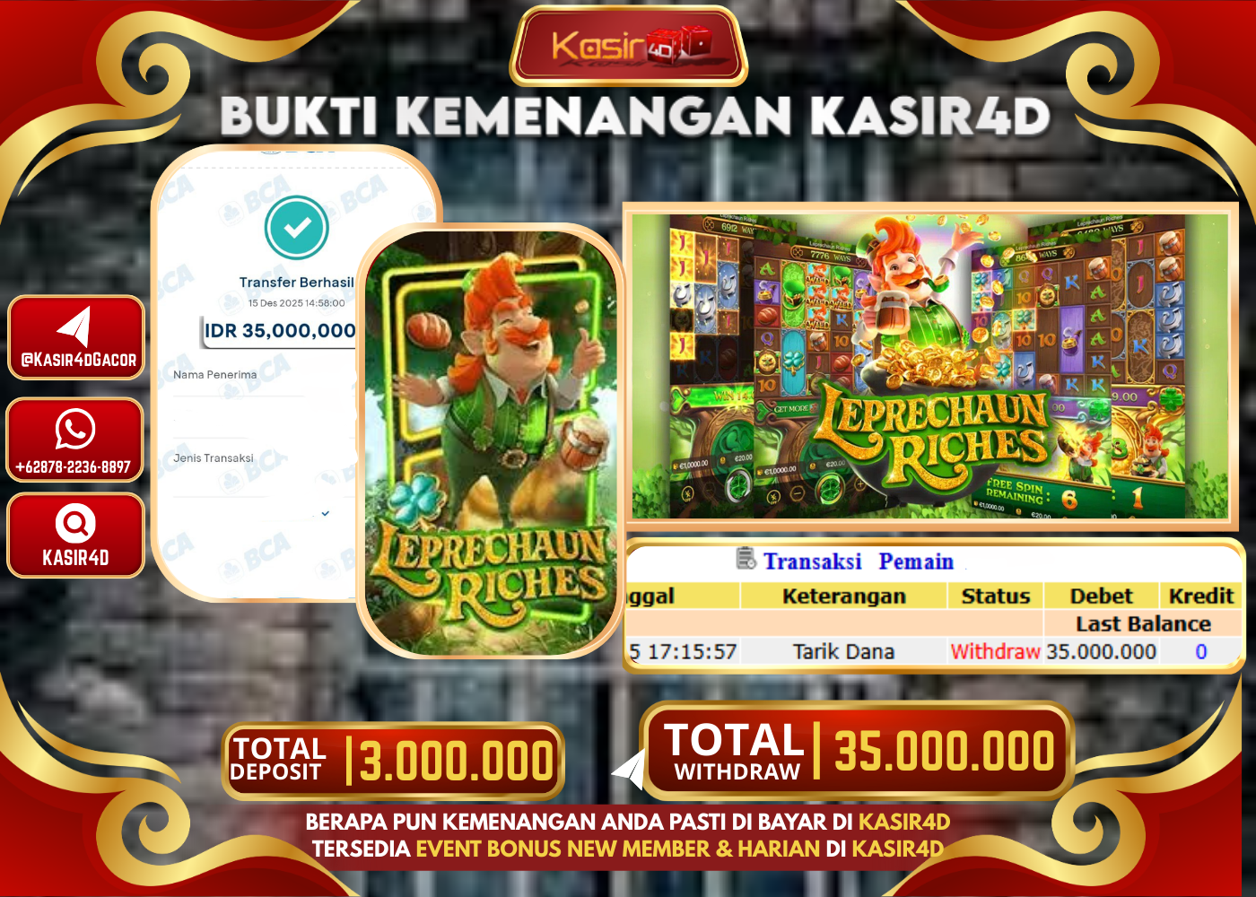 Maka tidak disangsikan kembali bila Anda memilih untuk mendaftarkan dan bermain di website slot Gacor KASIR4D , Anda terang mempunyai kesempatan besar untuk memperoleh jackpot maxwin yang spektakuler dibanding situs slot online yang lain secara umum.