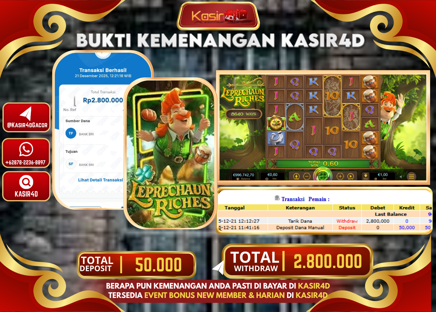 KASIR4D,Selamat Kepada User Id : I****25 Withdraw Hari ini Tgl 21 Desember 2025 Rp. 2,800,000 DI PG SOFTLEPRECHAUN RICHES