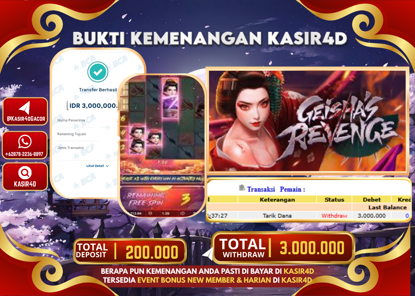 KASIR4D,Selamat Kepada User Id : E**** Withdraw Hari ini Tgl 24 Desember 2025 Rp. 3.000,000 DI PG SOFT GESHAS REVANGE