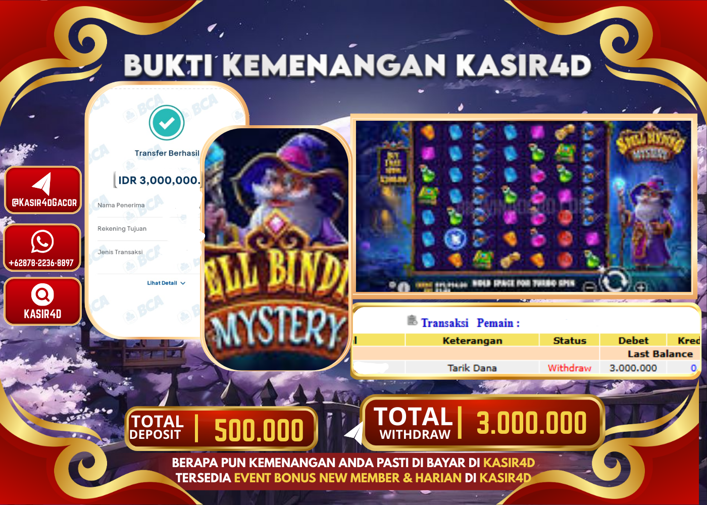 Maka tidak disangsikan kembali bila Anda memilih untuk mendaftarkan dan bermain di website slot Gacor KASIR4D , Anda terang mempunyai kesempatan besar untuk memperoleh jackpot maxwin yang spektakuler dibanding situs slot online yang lain secara umum.