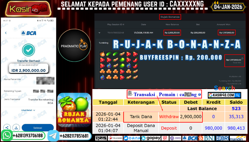Tgl 04 Januari 2026 Rp. 2.900.000 Di Game Pragmatic Play Rujak Bonanza