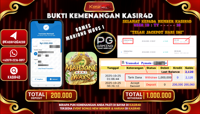 KASIR4D, Selamat Kepada User Id : Fa*****an08 Atas Withdraw Hari ini Tgl 08 September 2025