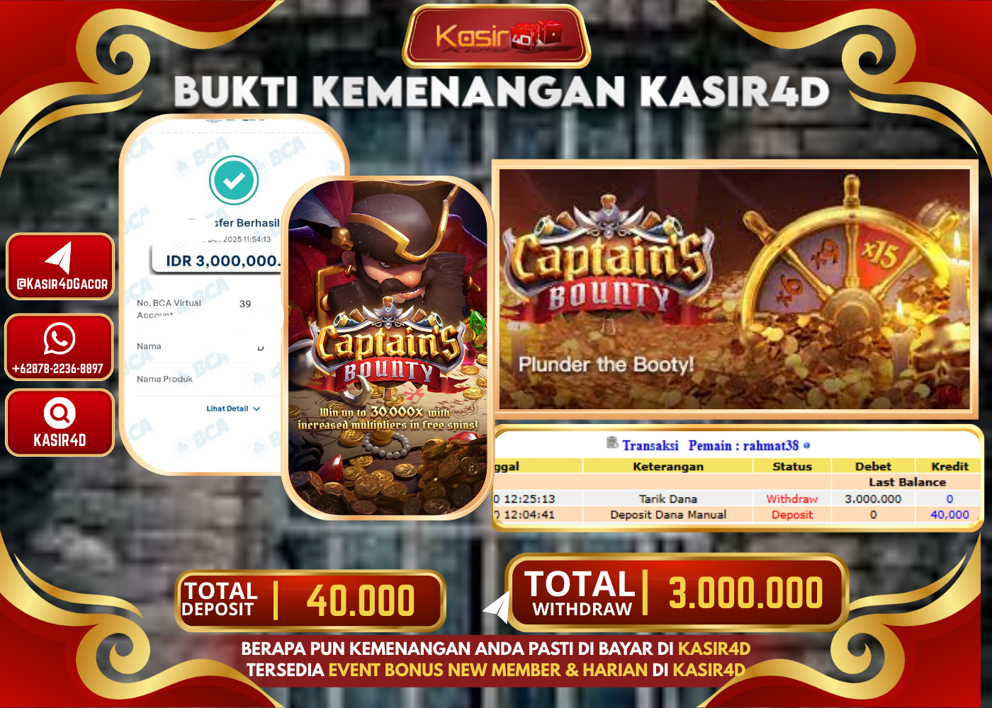 Tak hanya itu, Kasir4d juga menghadirkan promo dan bonus spesial, seperti bonus deposit 50% setiap hari untuk semua permainan slot. Bonus ini tentunya meningkatkan nilai lebih dalam pengalaman bermain Anda.