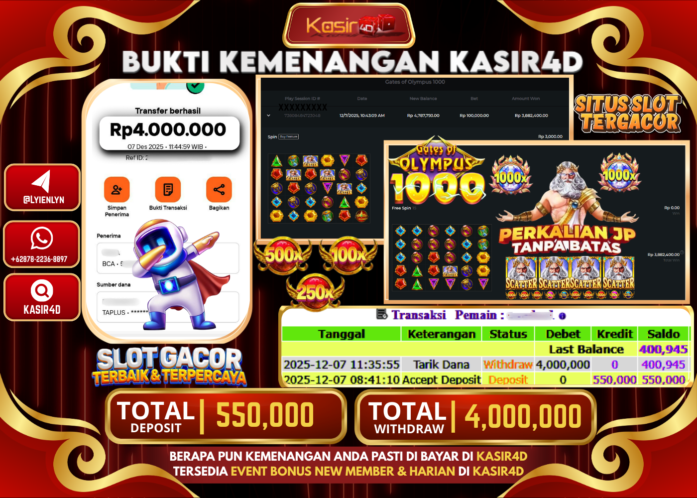Tak hanya itu, Kasir4d juga menghadirkan promo dan bonus spesial, seperti bonus deposit 50% setiap hari untuk semua permainan slot. Bonus ini tentunya meningkatkan nilai lebih dalam pengalaman bermain Anda.