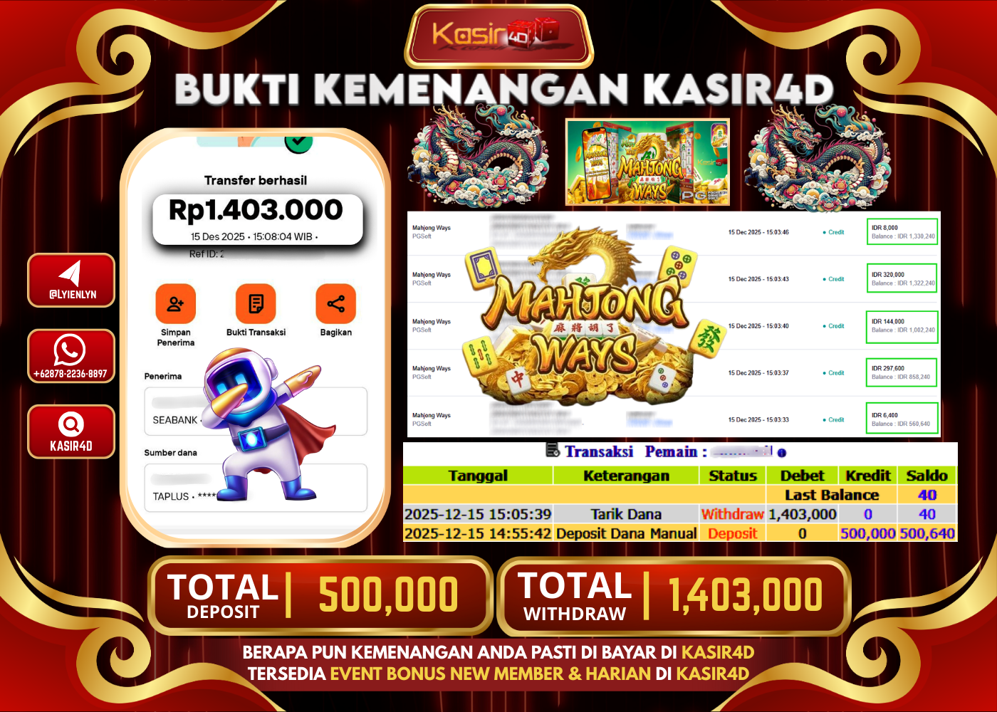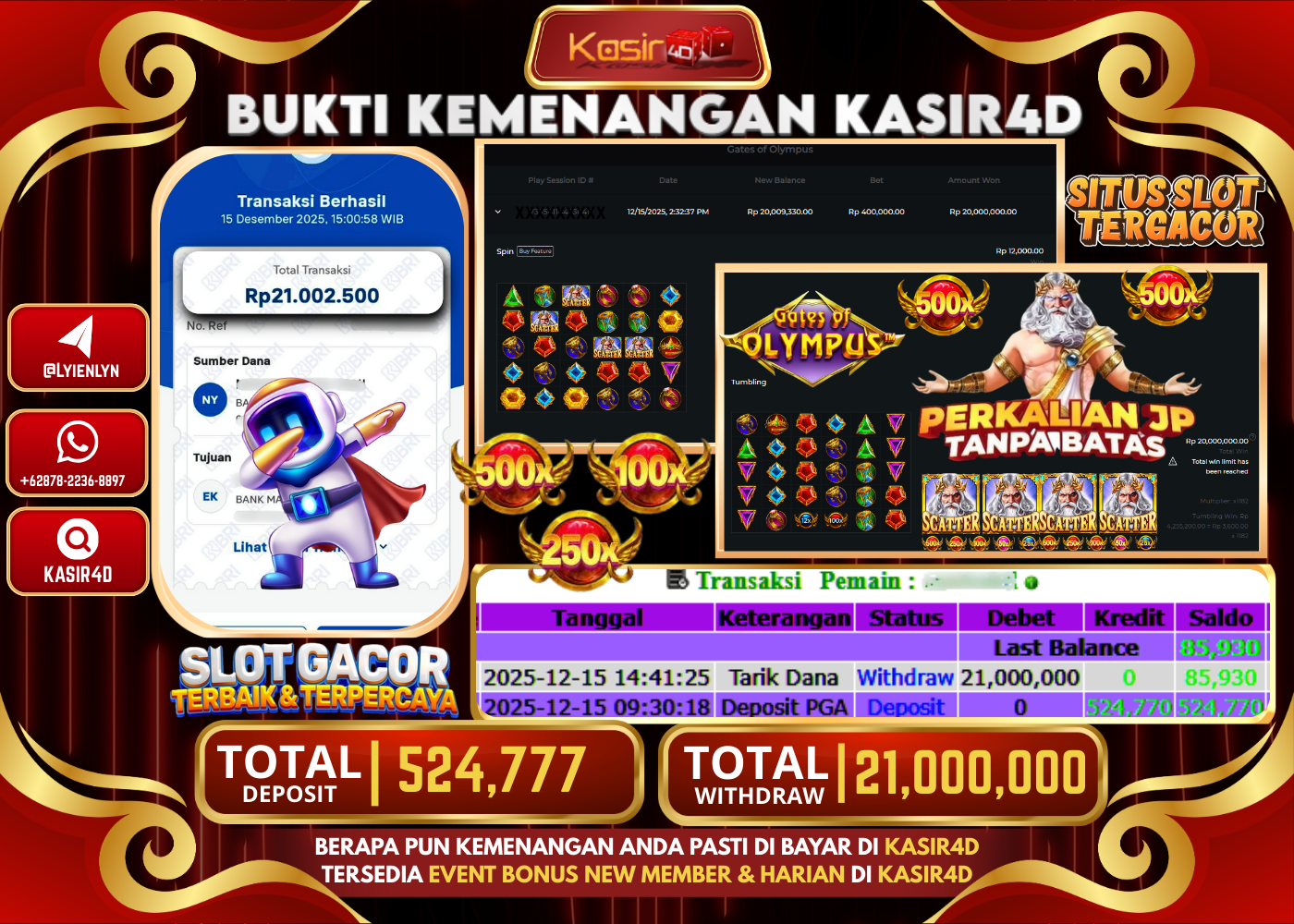 Tak hanya itu, Kasir4d juga menghadirkan promo dan bonus spesial, seperti bonus deposit 50% setiap hari untuk semua permainan slot. Bonus ini tentunya meningkatkan nilai lebih dalam pengalaman bermain Anda.
