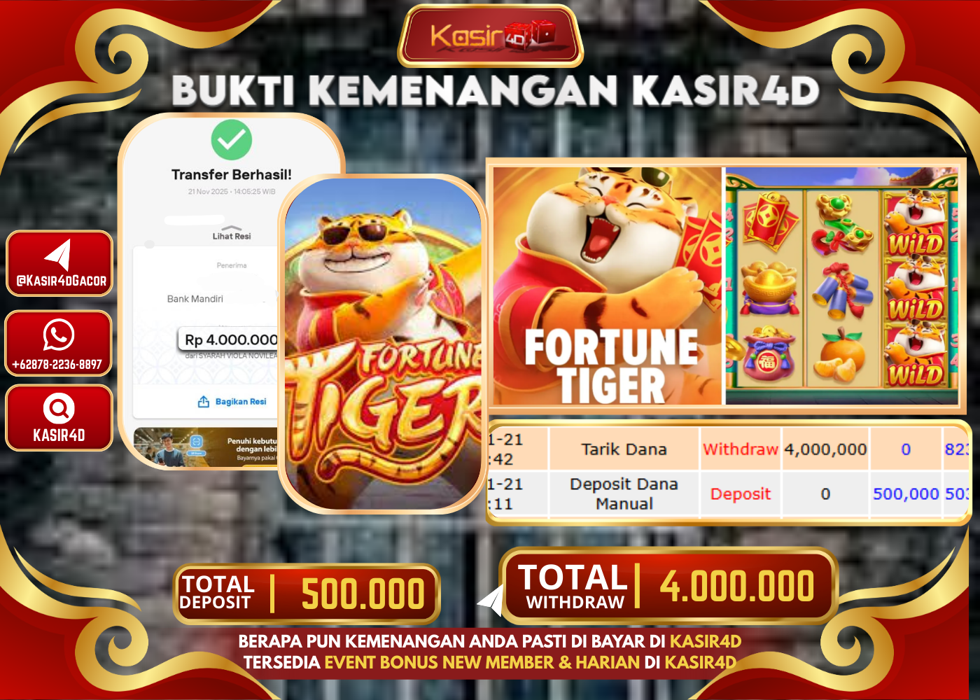 KASIR4D,Selamat Kepada User Id : f***i12Atas Withdraw Hari iniTgl 21 November 2025 Rp.4.000.000 Di Game Pg Soft FORTUNE TIGER INFORMASI LENGKAP TERKAIT SITUS…