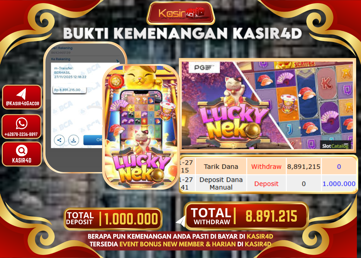 KASIR4D,Selamat Kepada User Id : D****88Atas Withdraw Hari iniTgl 27 November 2025 Rp.8,891,215 Di Game PG LUKY NEKO INFORMASI LENGKAP TERKAIT SITUS KASIR4D GACOR…